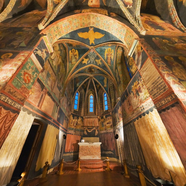 Іншою найдавнішою пам’яткою на території Люблінського замку є замковий костел Святої Трійці. Кам’яна святиня в стилі ренесансу була зведена в 14 столітті. Найбільш цікавим є огляд інтер’єру костьолу. Саме тут знаходяться знамениті фрески у візантійському стилі. Втім, фрески ці до візантійських майстрів не мають ніякого відношення. Вони були зроблені в 1418 році на замовлення Владислава Ягелло. Як відомо, ця людина встигла побувати і князем Вітебська, і Великим князем Литовським, і польським королем. Для отримання останнього титулу, Ягайло навіть прийняв хрещення, назвався Владиславом і став засновником династії Ягеллонів. Заодно хрестили і литовців – останній язичницький народ континенту. У будь-якому випадку, фрески в Костелі Святої Трійці є твором мистецтва міжнародного значення. А сам костел довгий час був королівською святинею.